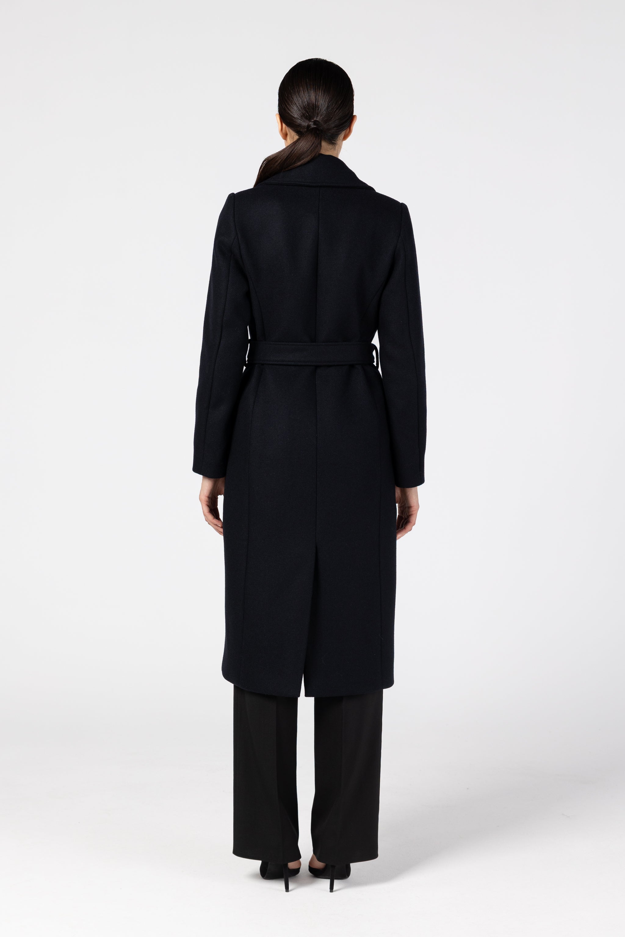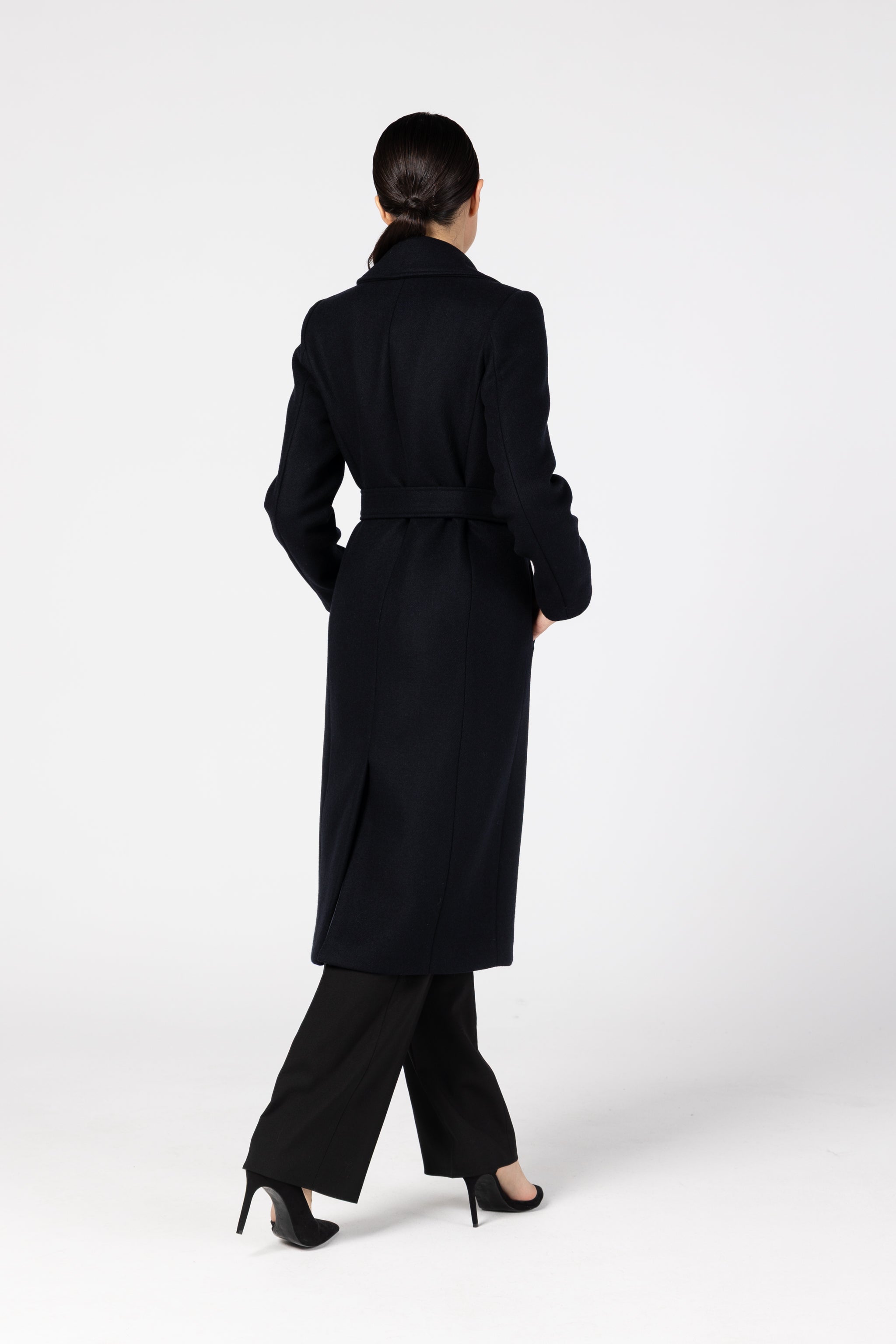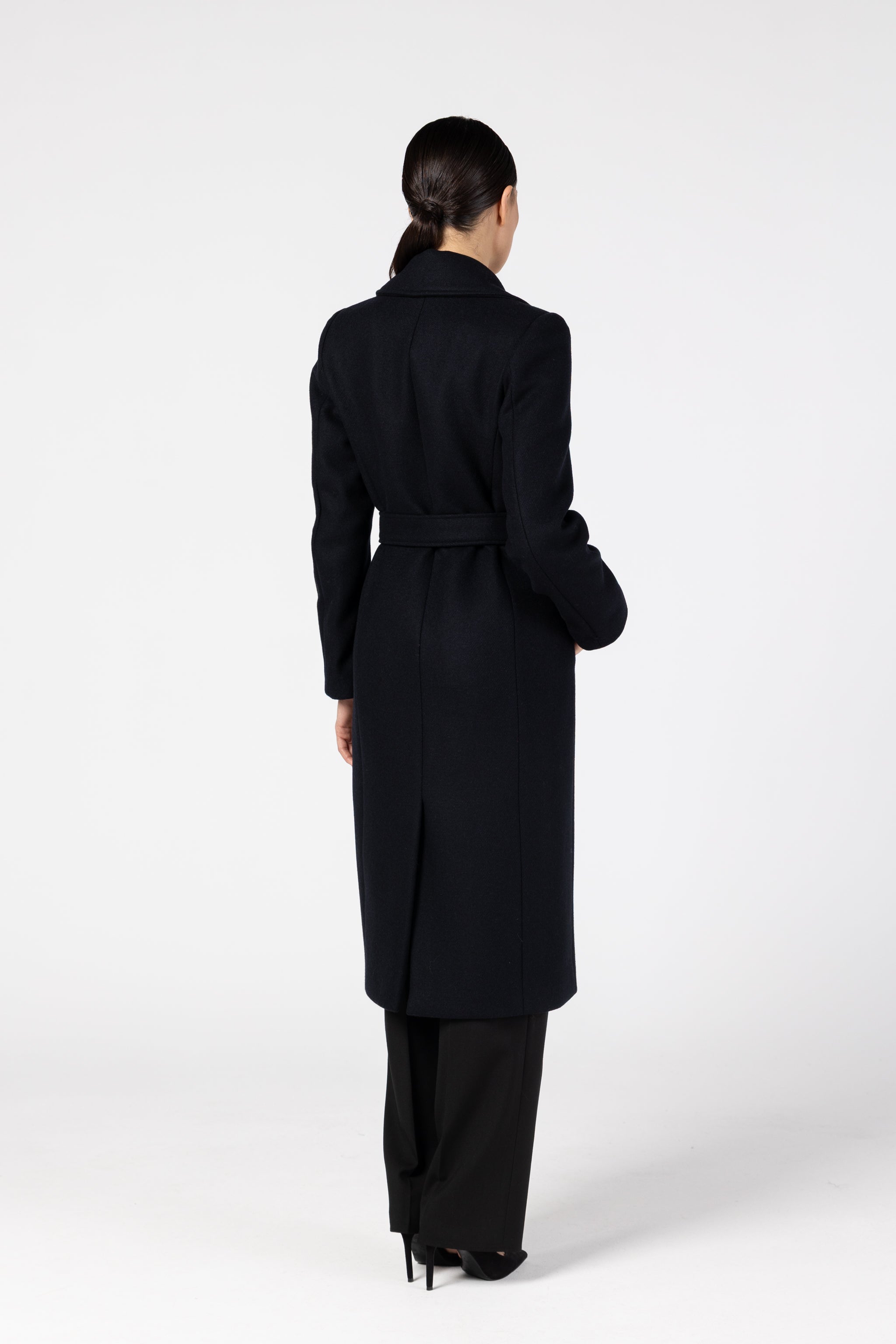 Palton midi cambrat din lana - bleumarin inchis