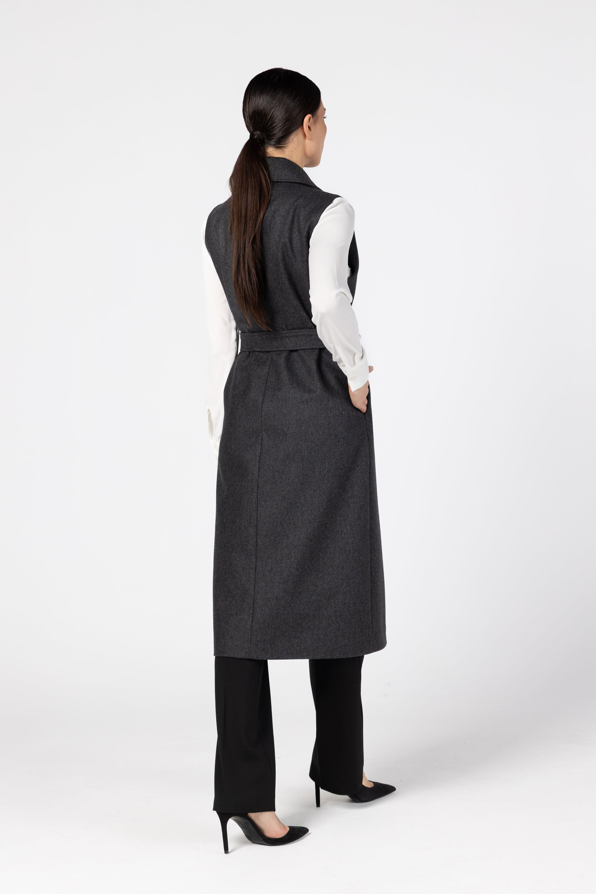 Această vestă lungă de culoare gri este piesa ideală pentru un look sofisticat și contemporan, adăugând o notă de eleganță minimalistă oricărei ținute. Realizată dintr-o țesătură de înaltă calitate, cu 80% lână și 20% poliamidă, oferă un echilibru perfect între confort și finețe, fiind o alegere inspirată pentru tranzițiile de sezon.