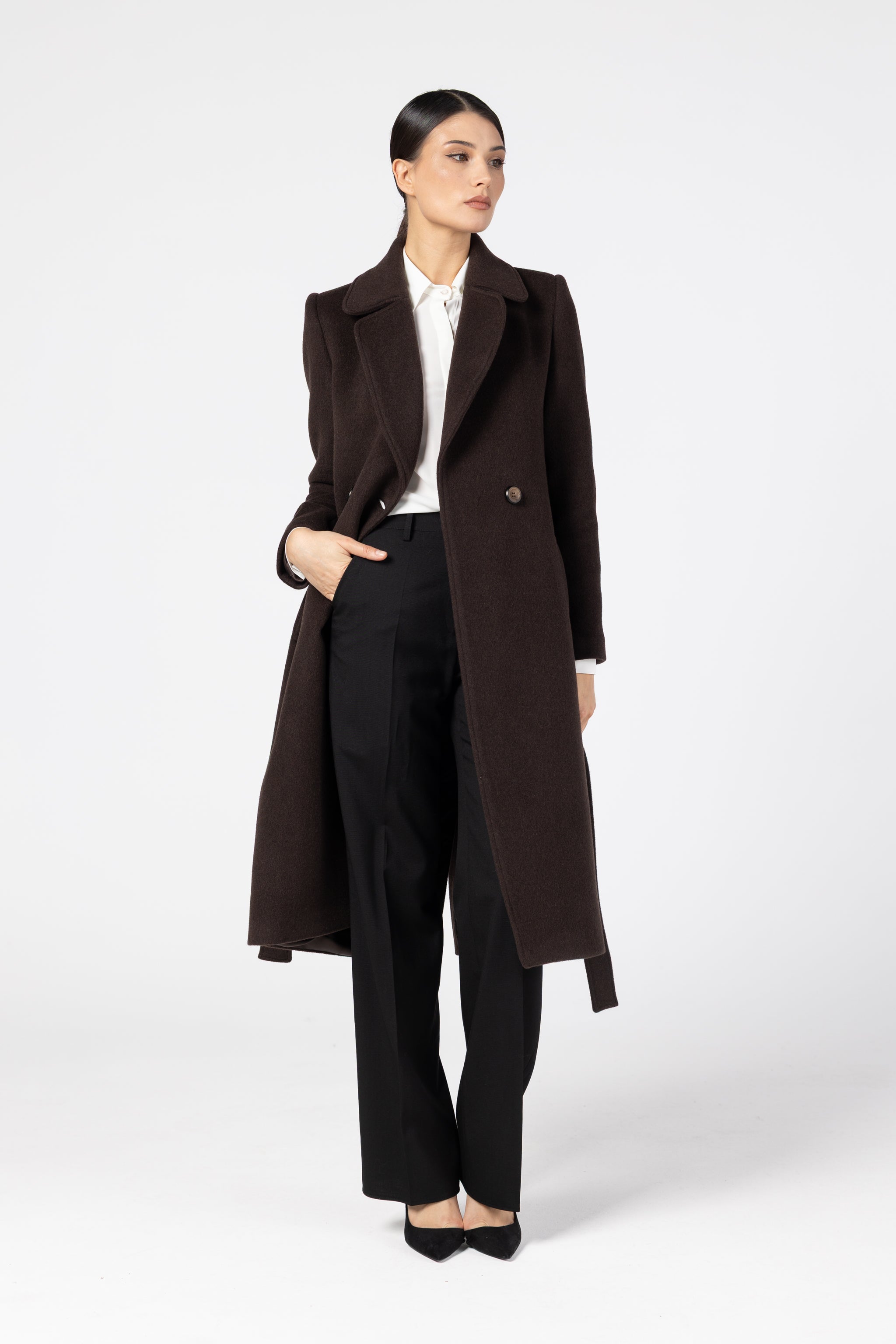 Acest palton este confectionat din 71% lana din par de camila si 21% lana virgina si este complet captusit cu captuseala din 100% vascoza. Fibrele de lana va ajuta sa va reglati caldura corpului, fiind în acelasi timp extrem de durabile. Croiul cambrat si lungimea la jumatatea gambei ofera acestui palton o tinuta eleganta, in timp ce buzunarele laterale sunt acolo pentru manusi, chei sau telefon.