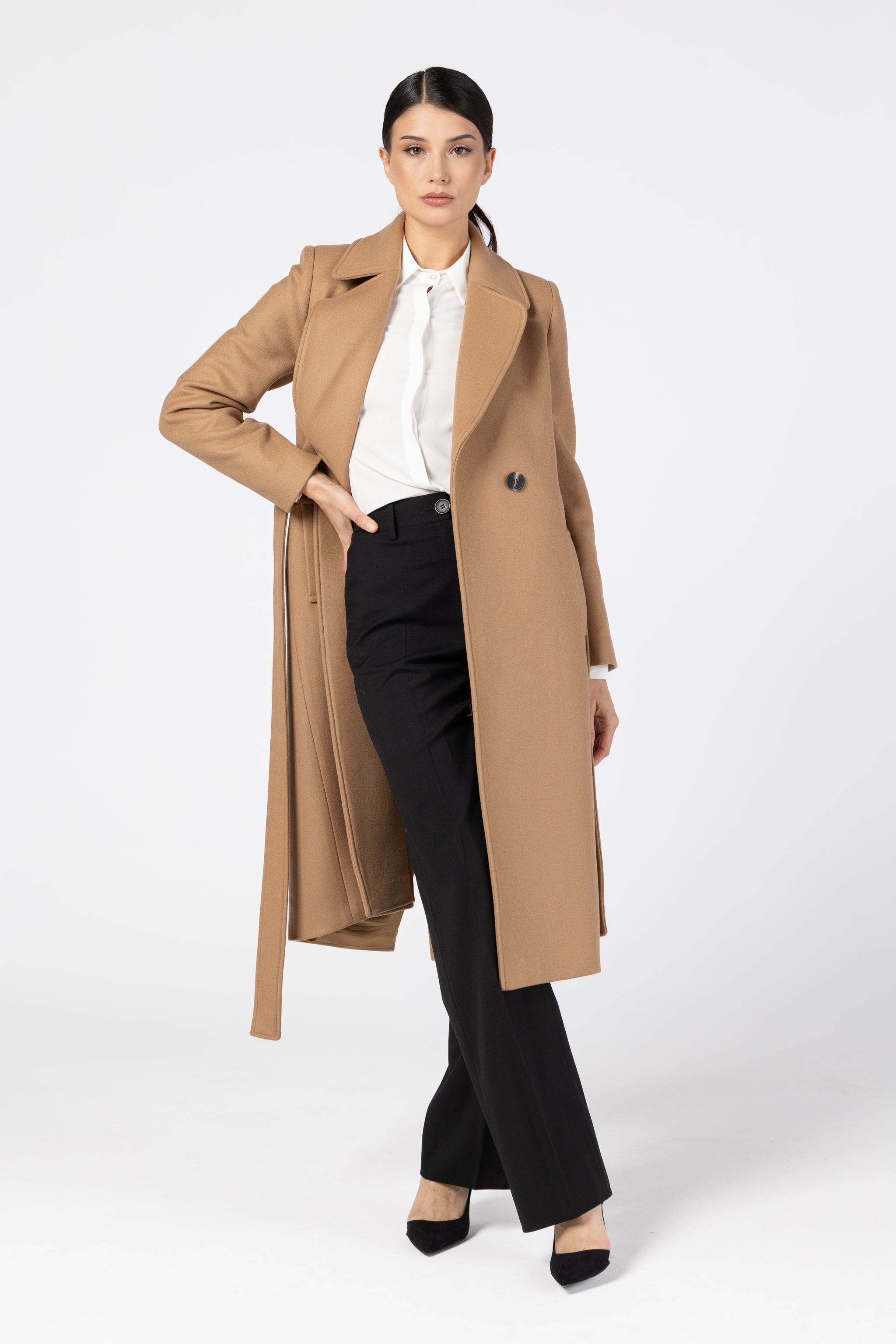 Acest palton este confectionat din 85% lana si este complet captusit cu captuseala din 100% vascoza. Fibrele de lana va ajuta sa va reglati caldura corpului, fiind în acelasi timp extrem de durabile. Croiul cambrat si lungimea la jumatatea gambei ofera acestui palton o tinuta eleganta, in timp ce buzunarele laterale sunt acolo pentru manusi, chei sau telefon.